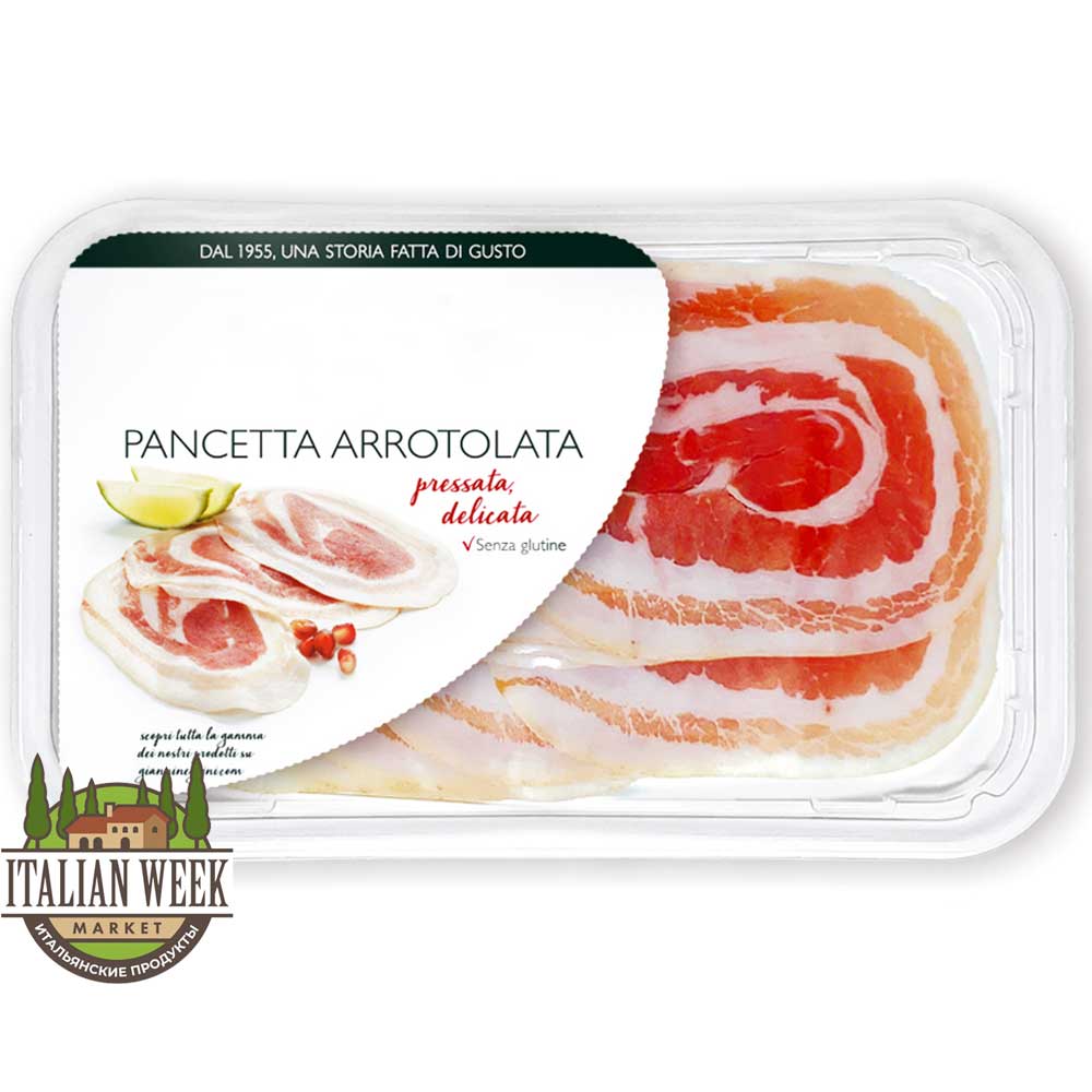 Pancetta Arrotolata - это душа итальянской кухни в формате максимального удобства. Это отборная свиная грудинка, просоленная, приправлена натуральными специями и ароматами, а затем плотно свёрнутая в рулет и бережно провяленная.
